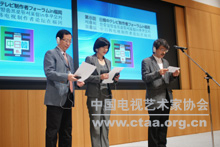 韩国放送人会理事长崔彰凤在祝辞中表示,我们迎来了自由利用国外电视节目的“没有国境的电视”时代,并选出了“年轻人”这个崭新的主题,希望此会全面讨论“怎样发掘节目及共同制作”等以往已经讨论过的议题,希望三国电视同仁之间的友谊和交流与日俱增。 中国视协驻会副主席黎鸣在祝辞中说道:9月14日是中国传统节日中秋节,也是韩国传统节日中秋节,9月15日是日本的敬老节。今天,我们中日韩三国的电视制作者欢聚在日本福冈,有相识多年的老朋友,也有刚结识的新朋友。我们的论坛也像一个大家庭,给人以温馨,给人以幸福。今年5月,我国四川等地区遭受了特大地震灾害;8月,在北京举办了世人瞩目的第29届奥运会。无论在我国的抗震救灾现场,还是在奥运会的赛事现场,我们都看到了日本、韩国电视同行的矫健身影。你们与中国人民、中国电视人共奋斗、同欢乐的作为永远留在我们心里。我代表中国电视人向给予我们真诚援助和支持的日本、韩国人民及电视同行表示衷心的感谢,同时感谢为此次论坛成功举办作出努力的朋友们。