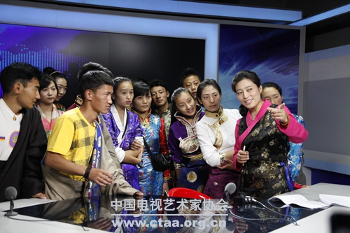 (孩子们与康巴卫视电视工作者进行交流。)