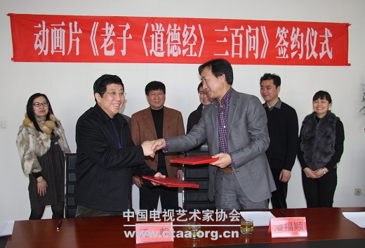 2012年2月10日上午,由省委宣传部、河北亚神影视艺术有限公司、河北星云传媒有限公司、帷幄动画有限公司联合出品的300集三维动画片《老子〈道德经〉三百问》(以下简称《老子》)在河北省文联二楼会议室举行了动画片《老子〈道德经〉三百问》签约仪式。省文联副主席郑世芳、省委宣传部文艺处处长王振儒、省影视协副主席兼秘书长、河北亚神影视艺术有限公司董事长汪帆、河北星云传媒 有限公司董事长潘福顺、河北星云传媒有限公司艺术总监姜健、河北移动电视有限公司总经理程野等领导专家出席签约仪式。