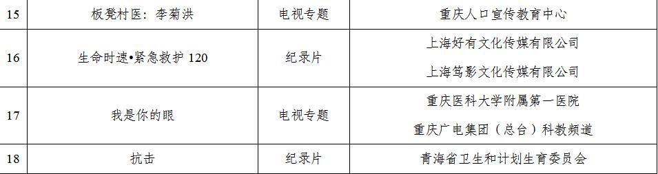 附件:第十六届中国人口文化奖广播影视类拟获奖作品名单